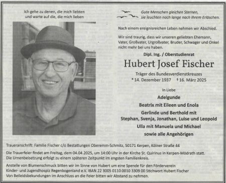 Hubert wird am Freitag, 4.4.2025 auf dem Friedhof in Kerpen- Mödrath verabschiedet. Unsere herzliche Anteilnahme und unser Mitgefühl gilt seiner Frau und der Familie.
